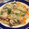 塩コショウで、調味します。 - 火を止め、水溶き片栗粉を少しずつ加え、再び中火にかけて混ぜトロミがつけば麺にかけて出来上がりです。