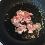 - フライパンを中火にかけて熱し、ごま油大さじ1、生姜を入れる。